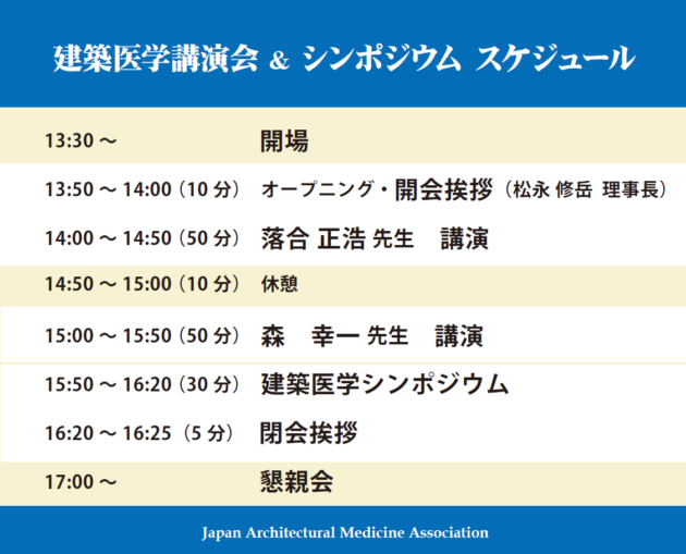 <ご案内>10月25日 (土) 13:50~16:30 建築医学講演会&シンポジウム